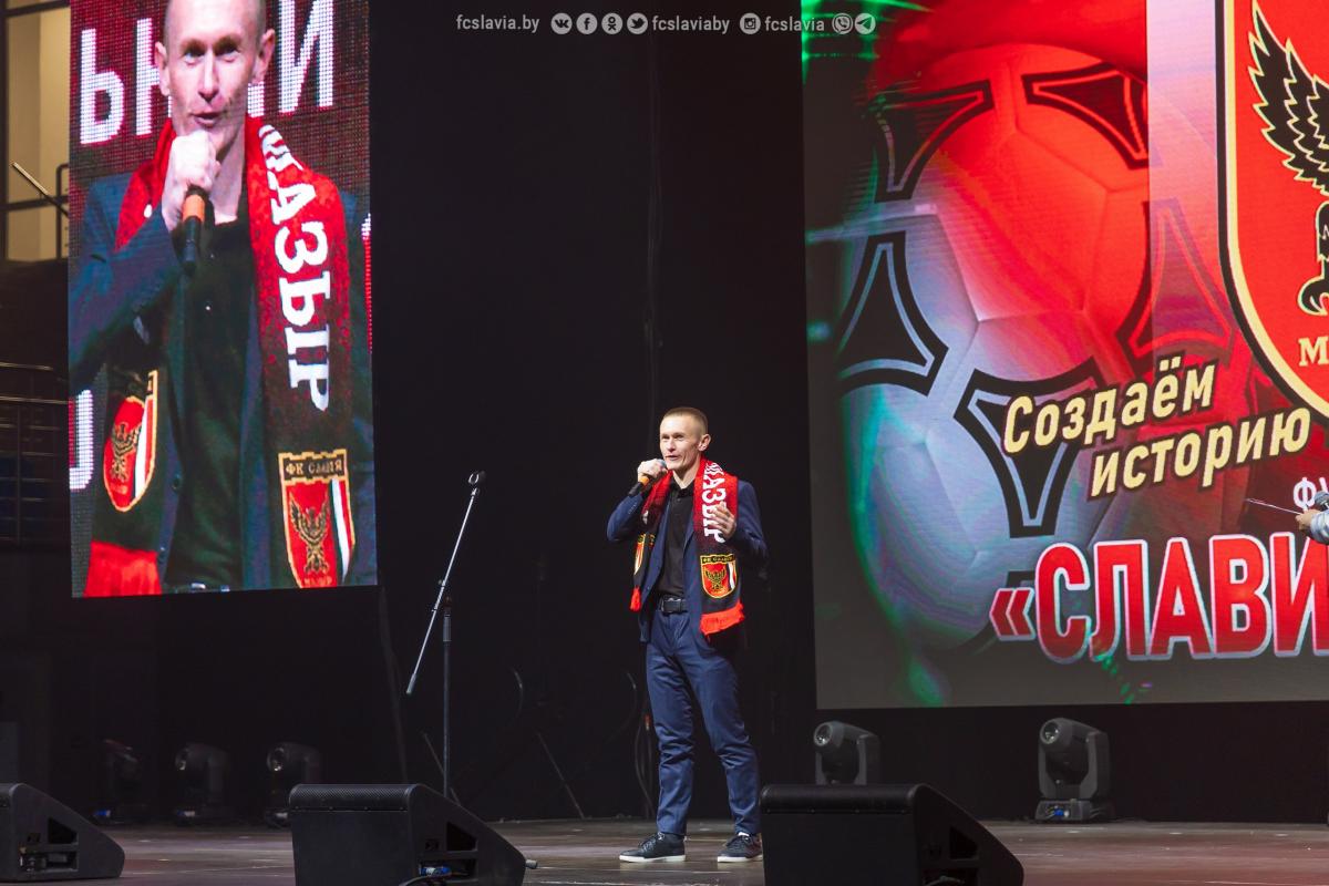 После настал черед главных виновников торжества. И первым держать удар словесный, что, кстати, очень умеет делать, отправился главный тренер «Славии-Мозырь» Иван Биончик. – Спасибо организаторам за прекрасное мероприятие, почетным гостям за внимание и поддержку, а также огромная благодарность всем болельщикам. У меня есть небольшое замечание к нашим ведущим, которые в своем выступлении часто произносили название клуба «Гомель». Мы собрались поздравлять «Гомель» или «Славию»? Я рад, что сегодня мы собрались одной большой семьей, чтобы порадоваться и отпраздновать это событие. Благодарю наши семьи, которые всегда нас поддерживают и всегда рядом с нами. Спасибо всем! Давайте дружно проскандируем: «Сла-ви-я!». Иван Сергеевич так завел болельщиков на трибунах, что еще долго под сводами «Полесье-Арены» они дружно скандировали название своей любимой команды.